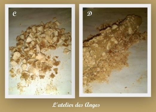 Préchauffer le four à 150°C . Fouetter les blancs en neige, et les serrer en ajoutant le sucre en poudre, la meringue doit être lisse et brillante. Mélanger la poudre de noisette et le sucre glace ensemble, et les incorporer délicatement à la meringue en utilisant une maryse. Verser la meringue dans une poche munie d'une douille n°14, et dresser une bande de 35 x 8 cm (la taille du moule à bûche) et dresser le reste en une seconde bande pour faire des brisures (C) et pourquoi pas en bâtonnets pour votre décor par exemple, à vous de voir. Enfourner pour 40 à 45 minutes de cuisson. Puis laisser refroidir.