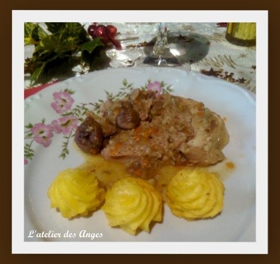 C'est toujours l'escalade des prix à l'approche de Noël, mais nous voulons quand même avoir un repas de fête pour le réveillon ... cette année, je vous propose de faire une cuisse de dinde farcie aux marrons. C'est une pièce de viande à un prix très accessible et pour être franche il y a beaucoup moins de reste qu'avec un chapon ou autre volaille. Sur la recette que je vous propose aujourd'hui, l'on peut manger pour 6 à 8 personnes...